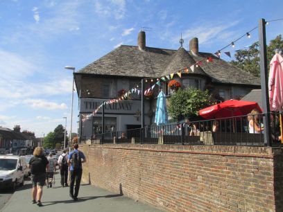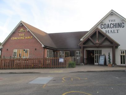 The M23 is crossed. A little further on we stopped for a very pleasant meal at the Coaching Halt.