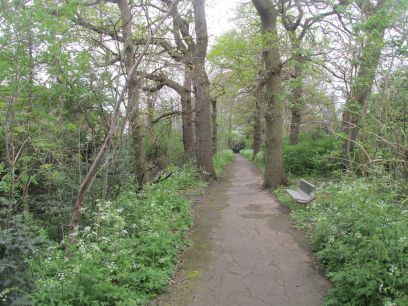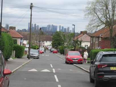 There is now a lengthy bit of road walking through Downham which offers good views of Canary Wharf. Afterwards into Downham Woodland Walk, a pleasant wooded area between the houses.