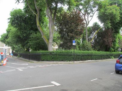 A little bit of road walking brought me to Lloyd Square, part of the Lloyd Baker estate with period houses and a central garden which was not accessible. Next Wilmington Square with a pleasant central garden.