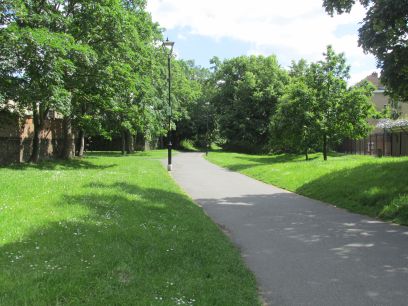 The adjacent Victory Community Park was closed for redevelopment so I had to follow the official route along the road. After more and more estate houses Salisbury Row Park is reached.