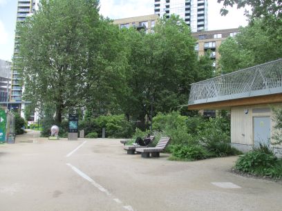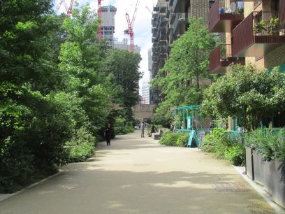Elephant Park, the first bit of greenery for some time, a new development around the Heygate estate. Much building is going on here and I found the exit from the park closed because a huge crane was planted there. First diversion around the side streets.