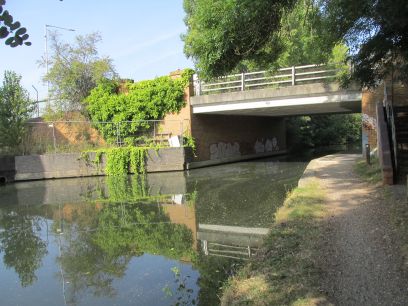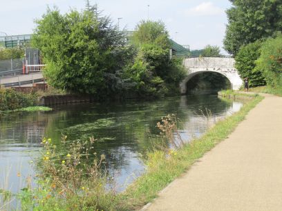 Here we leave the canal and follow the Slough branch of the Grand Union for half a mile. An aquaduct takes the canal over Fray's River.
