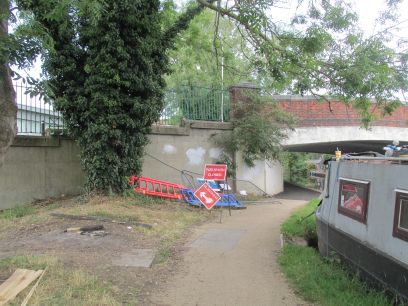 The path ends and emerges on roads which lead back down to the Grand Union. Work has been going on here repairing the towpath. Although the barriers had been removed it was not clear that work had ended so I took the suggested diversion into Uxbridge. First though I stopped to have a pleasant lunch in the nearby General Elliot.