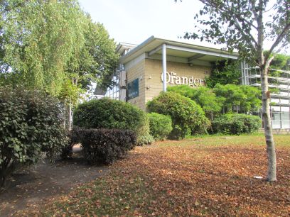 The Orangery cafe and club house then another stretch of woodland between the links.