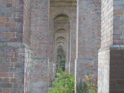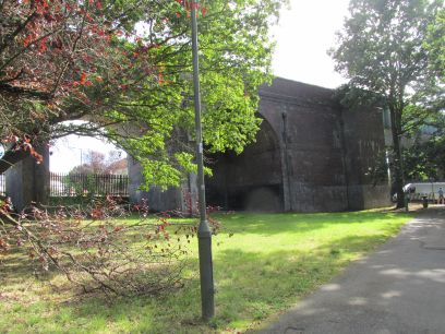The Brook in light woodland, then we reach the magnificent Arnos Park viaduct.