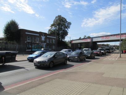 The busy North Circular has to be crossed via a pedestrian crossing. The New River is picked up again.