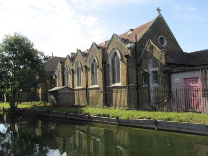 The Riverside Community Church backs onto the river. Then we reach the end of the river as it flows underground for a while.