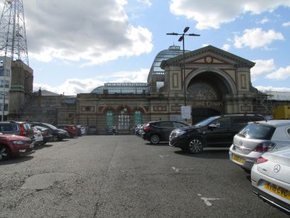 Alexandra Palace station where the railway line is crossed via a footbridge and takes us into Alexandra Palace park, passing the rose garden. It was a steep climb up to the palace and we needed a rest at the top.