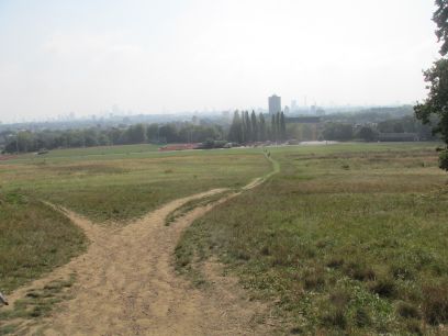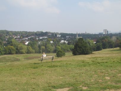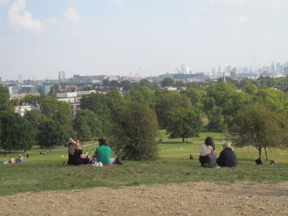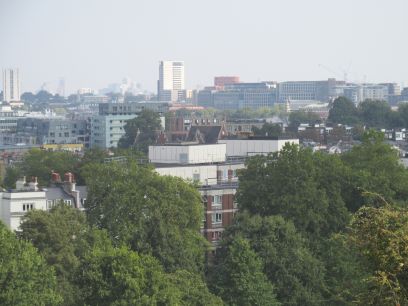 Good views of Highgate and central Londom from the summit. Then a rather steep path down, not the way we should have taken, to take us out of Hampstead Heath near Gospel Oak station.