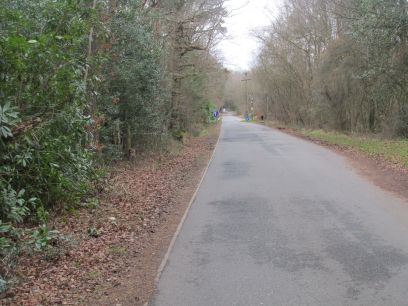 After crossing the greens of the golf club the access road to the Ravenswood Settlement is followed up to Nine Mile Ride.