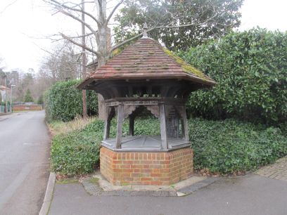 Sandhurst and Yateley Methodist Church and opposite Sandhurst Well, erected according to the rather faded inscription in memory of Harriet Walter Vyvyan Connel who died in August 1874.