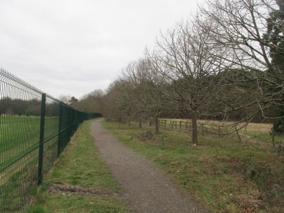 After a short stretch of residential streets the route turns north and then skirts the grounds of Wellington College which are extensive. A line of trees was planted in 2003 to celebrate the College's 150th anniversary.