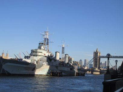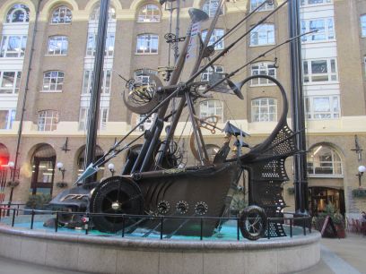 To make a day out, and as it was lunch time, I continued to London Bridge and had a pleasant lunch at Hornimans, in the Hays Galleria, passing the strange Navigators sculpture. Then a walk along the Thames back to Waterloo passing HMS Belfast.
