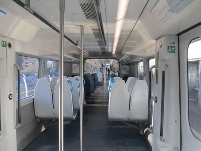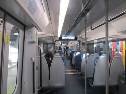 Comments from those who travelled on the service the previous day suggested that the airline type seats are quite close together and also somewhat narrow. To some extent I agreed though I still found them pretty comfortable. As well as the usual information displays which showed quite detailed information there are also displays on the side walls of the carriages showing the next stop etc, something I have not seen before. The display indicated that although our carriage was lightly loaded, the very front carriage was very busy.