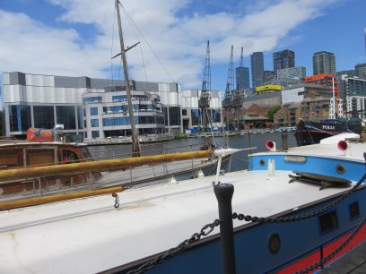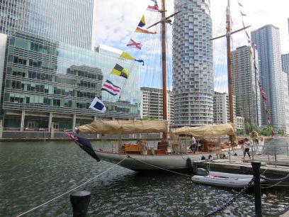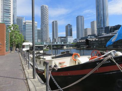 A walk along South Quay brought me to Millwall Inner Dock which was followed for a while. A couple of boats were moored alongside, one being worked on.