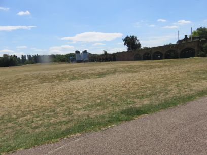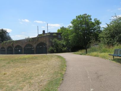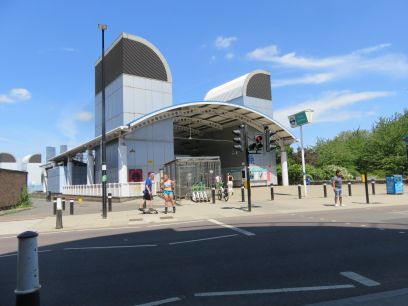 Dominating the park is Millwall Viaduct. This originally carried the Millwall Extension Railway down to Island Gardens but when Millwall FC moved it dramatically reduced demand and the branch line closed in 1926. It remained unused until the DLR was built in 1987 when the new light railway ran over the viaduct to the then end station, Island Gardens. But when the DLR was extended to Lewisham in 1999 the line had to go underground so the viaduct again went dormant. Today the arches are largely used by the sporting facilities and judging by the shouts of the children the other side they are being well used. At the other end is the current Island Gardens DLR station where the line is already underground.