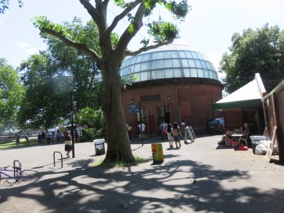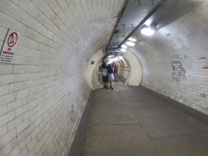 So reaching the end of the peninsular I came to Island Gardens and crossed to the other side via the Greenwich Foot Tunnel. The section shown here was damaged by bombs in WW2 and has been repaired with new steel rings which reduce the diameter of the tunnel somewhat. The tunnel seemed very busy with lots of people using it.