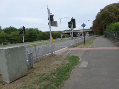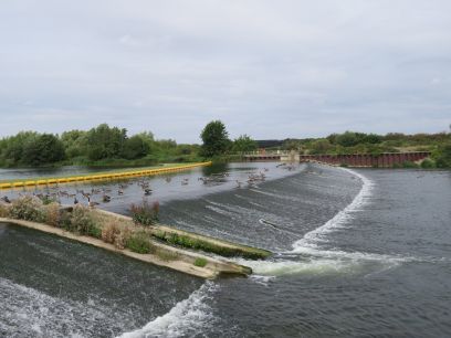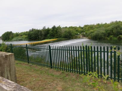 The A332 Slough Road which has to be crossed at traffic lights. Then the impressive Slough Weir.