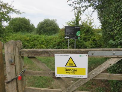 After passing Manor Farm and Dorney footbridges I came to Ashford Lane footbridge. This had been closed for a year and in June it spectacularly collapsed into the river. I think the photographs in the press were taken from the opposite bank and I couldn't see the collapsed section but as you can see it is firmly closed from access.