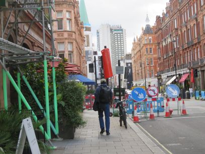 Exiting here I faced more development, the book suggesting I used the zebra crossing but then there would be no pavement so I had to negotiate round more works. The route heads to Piccadilly and reaches Green Park by the tube station.