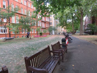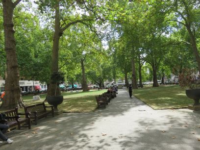 Out of the gardens and the Silence fountain. Then through Berkeley Square Gardens.