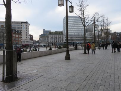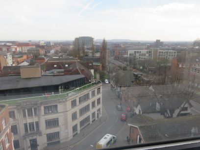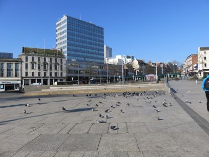 I stayed in the Travelodge, five minutes walk from the square. My sixth floor room offered good views of the City. Birds in the Old Market Square, none of the water features were turned on.