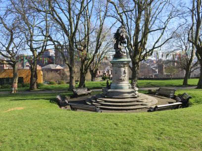 The mansion on top of the 'Rock'.Another view of the Albert Ball statue.