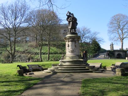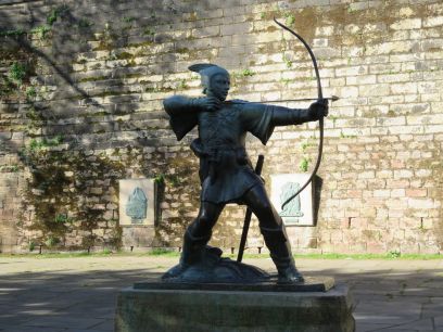 Outside the castle walls is a statue of Robin Hood and various sculptures and information boards about him.