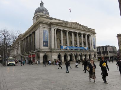 The Old Market Square is the meeting place in the City centre. Used as a market square from mediaeval times it has been reconstructed over the years, the latest in 2007, and bears little resemblance to its predecessor. As well as a meeting place, it is used for special occasions like Christmas Fayres and is also a hub of the City tram network. Adjacent is the splendid Nottingham Council House, the City Hall, and used on official occasions. It can be viewed with guided walks which need booking in advance.