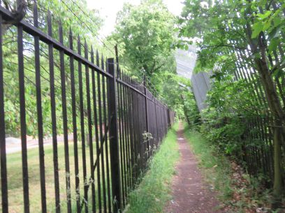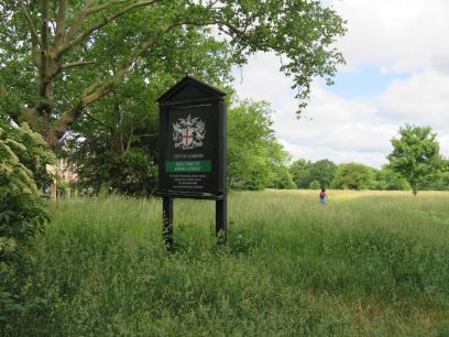 A narrow path skirts the edge of the park, emerging eventually opposite one of the entrances to the City of London Cemetery though there is no public access here.