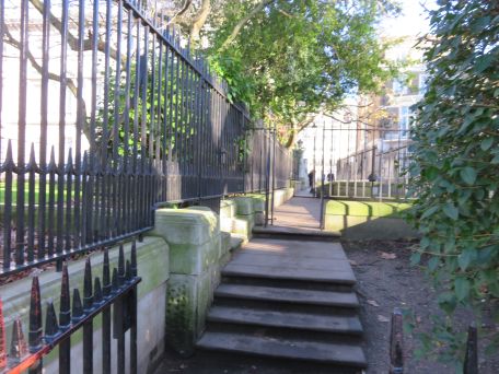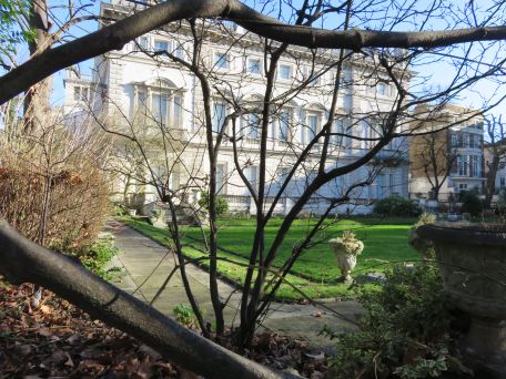 The rear gardens of Spencer House then steps leading past the adjacent Bridgewater House.