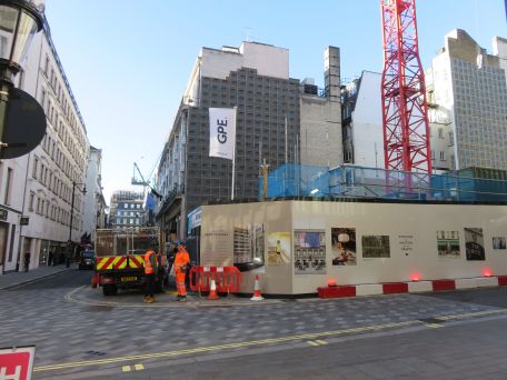 Into Jermyn Street. The guide book tells me to look out for the Alfred Dunhill store which had a museum on the upper floor. This is all that remains of Alfred Dunhill with various footpaths closed for the works. A little further on Bennet Street looked like a cul-de-sac but there was a narrow, very steep, staircase down to Park Place.