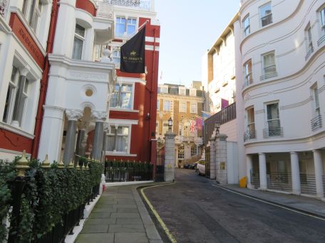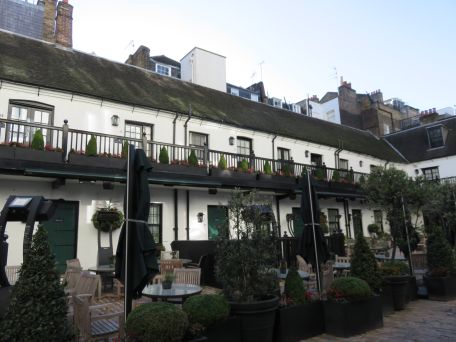 The Royal Over-Seas League occupies the fine buildings here. Then Blue Bell Yard with former mews cottages which now forms an annexe to the Stafford Hotel.