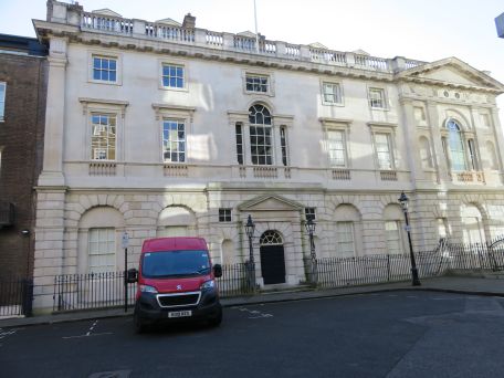 Spencer House, former town house of Diana Princess of Wales family but now owned by Lord Rothchild. A narrow pathway leads to Green Park.