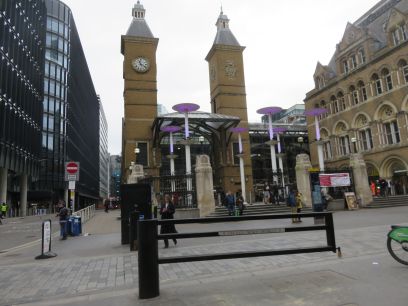 In the churchyard is a Turkish Bathhouse but buried behind building site hoardings. Then up to Liverpool Street station, the official start of this walk.